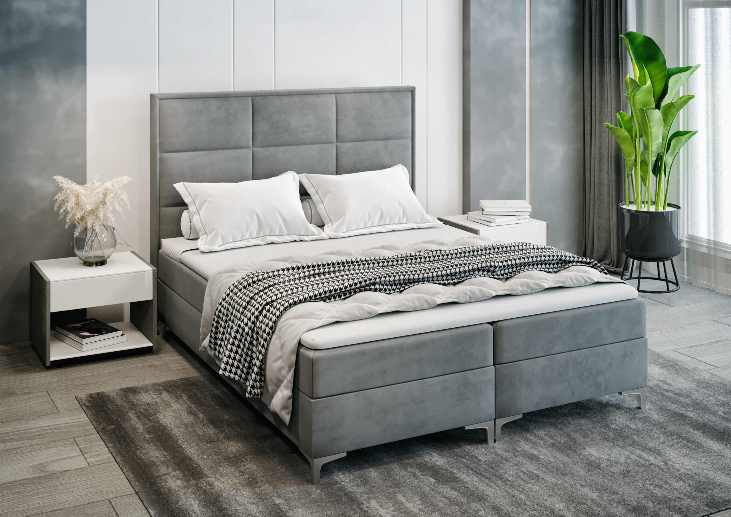 The continental bed NORI is the perfect choice for an elegant bedroom with a touch of modernity. The bed Nori was created to guarantee the highest quality of comfort and design. A beautiful headboard attracts attention.